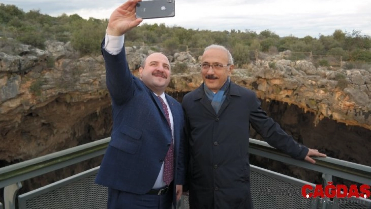Sanayi ve Teknoloji Bakanı Mustafa Varank, TBMM Plan ve Bütçe Komisyonu Başkanı Mersin Milletvekili Lütfi Elvan ile birlikte Mersin’de bulunun Cehennem Obruğu seyir terasını ziyaret ederek öz çekim yaptı.
