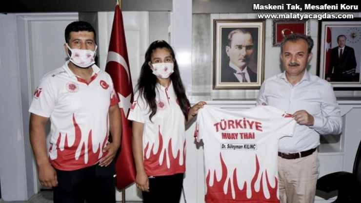 Adıyamanlı milli sporcu Ayşe İkra Erdoğan, Adıyaman Belediye Başkanı Süleyman Kılınç'ı makamında ziyaret etti.