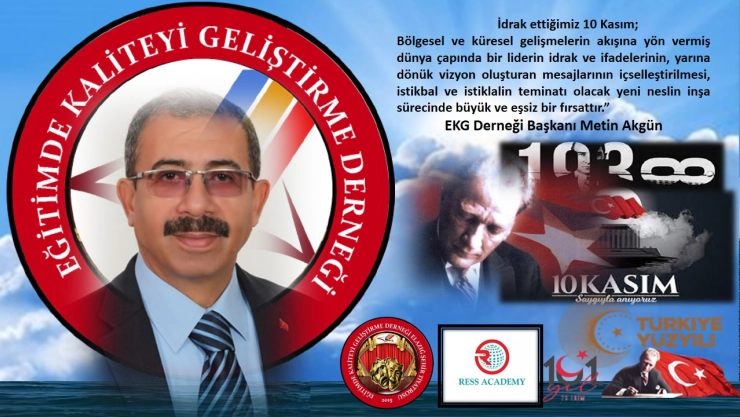 Eğitimde Kaliteyi Geliştirme Derneği Başkanı Metin AKGÜN, '10 Kasım Atatürk'ü Anma' Dolayısıyla Mesaj Yayımladı.