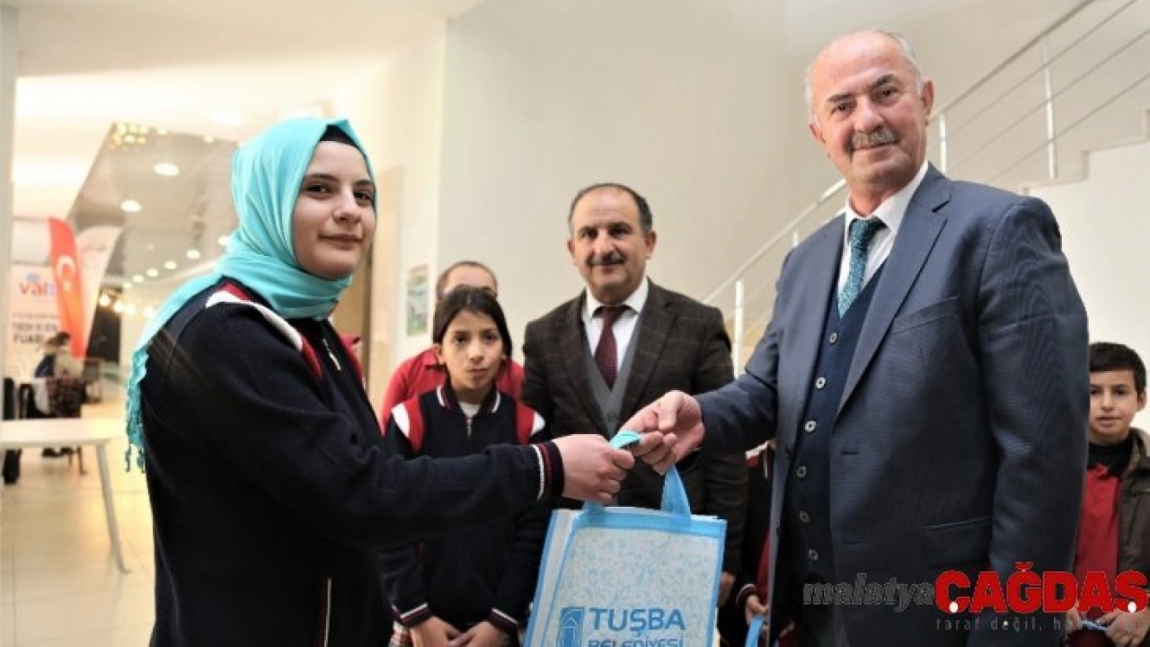 Van'ın Tuşba Belediye Başkanı Salih Akman, bu yıl üçüncü kez kapılarını açan '3. Van Kitap Fuarı'nı ziyaret ederek öğrencilere kitap hediye etti.
