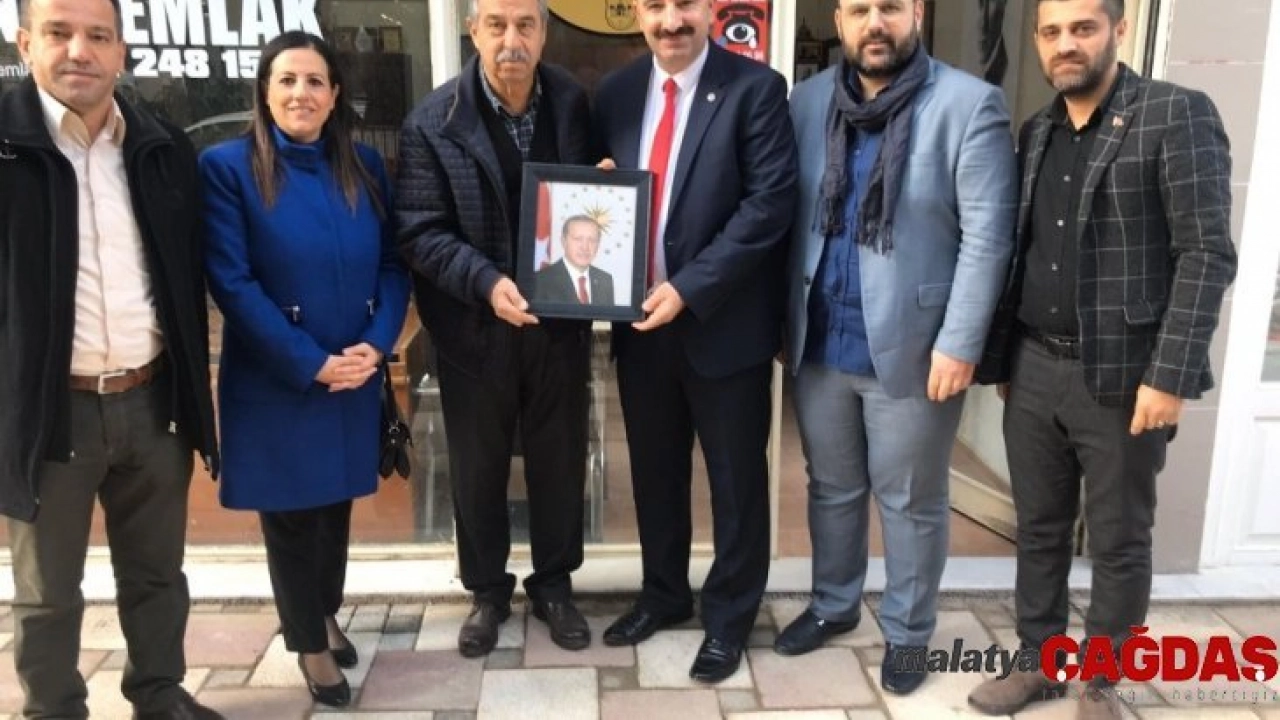 AK Parti Konak İlçe Başkanı Mehmet Sait Başdaş, muhtarları ziyaret ederek Cumhurbaşkanı Recep Tayyip Erdoğan'ın resmini hediye etmeye devam ediyor.