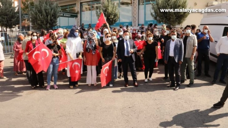 HDP Diyarbakır il başkanlığı önünde evlat nöbetinde bulunan annelerin yürüyüşüne Bağlar Belediye Başkanı Hüseyin Beyoğlu kalabalık bir grupla katılarak destek verip eyleme katılanlara Türk bayrağı dağıttı.