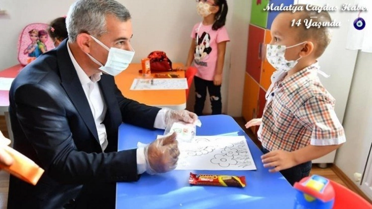 Çocuklarla yakından ilgilenip sohbet eden Yeşilyurt Belediye Başkanı Mehmet Çınar, korona virüs salgınından uzak durmak adına maske dağıtımı yaptı.