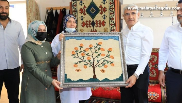 Malatya'nın Battalgazi Belediye Başkanı Osman Güder, semt konağında açılan halı dokuma kursundaki kursiyerlerle bir araya gelerek, sohbet etti.
