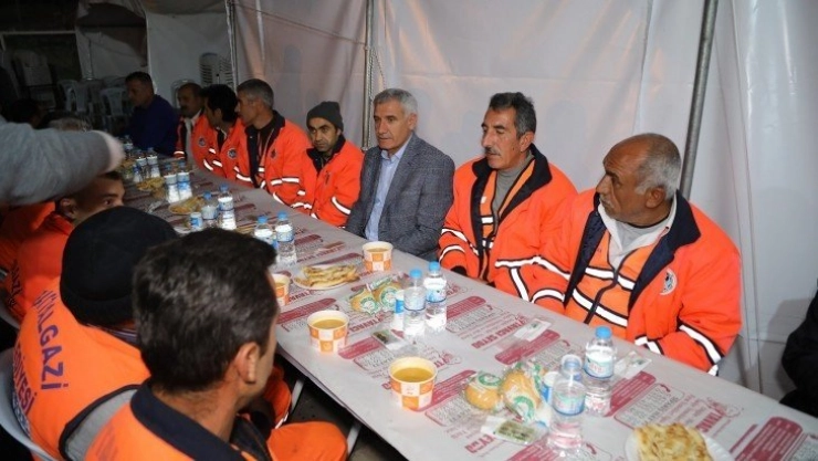 Battalgazi Belediye Başkanı Osman Güder, Battalgazi Belediyesi Temizlik İşleri Müdürlüğü personelleri ile sahurda bir araya geldi.