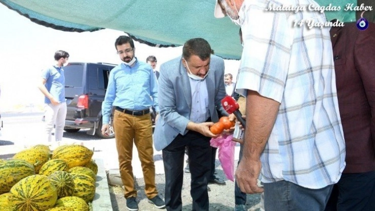 Malatya Büyükşehir Belediye Başkanı Selahattin Gürkan, Malatya'nın Arguvan ilçesinde bir dizi ziyarette bulundu. İlçe belediyesi ziyaretinden sonra organik tarım yapan bir çiftçiyi ziyaret eden Başkan Gürkan, Narmikan kavunu, karpuzu ve yerli domatesi inceledi.