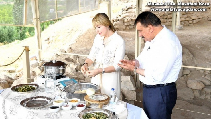 Başkan Gürkan, Malatya’nın tarihini, tarihi yerlerini, ArslantepeHöyüğü’nü tanıttı. Başkan Gürkan ayrıca programda Malatya yemeklerinden HırçikliKöfte’yi program sunucusu Asuman Kerkez ile birlikte yapıp pişirdiler.