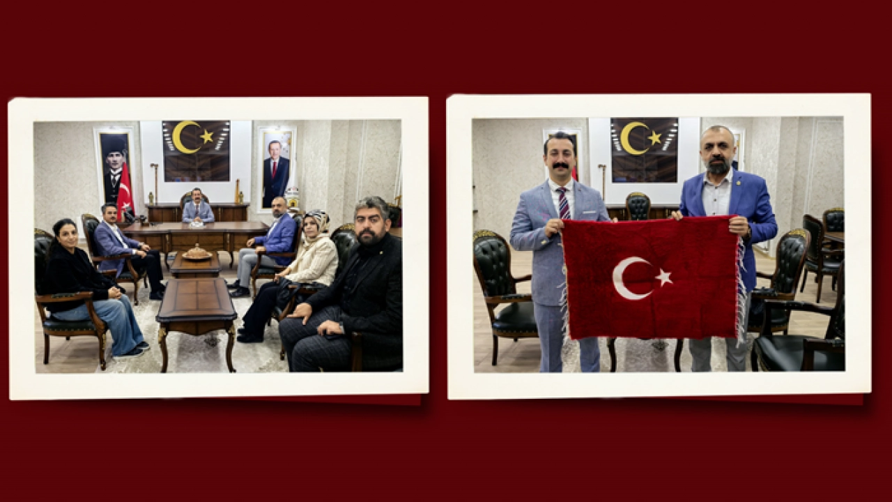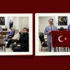 Malatya Damızlık Koyun Keçi Yetiştiricileri Birliği Başkanı İhsan Akın, Hekimhan Kaymakamı Mehmet Fatih Güllü'yü makamında ziyaret ederek halıya işlenmiş Türk bayrağı hediye etti.