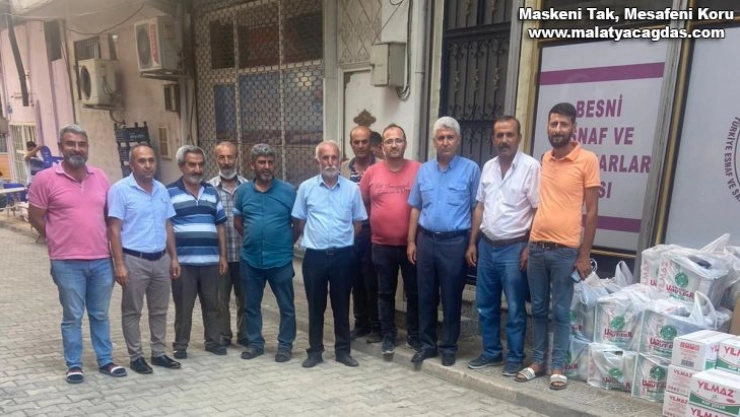Besni Esnaf ve Sanatkarlar Odası Başkanı Hayati İşitmen, kahvehane esnafına çay ve şeker yardımında bulundu.
