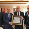 Başkan Kayda, ziyaret anısı olarak Ulaştırma ve Altyapı Bakanı Mehmet Cahit Turhan’a Lidya Uygarlığına başkentlik yapan Sart’ın resmedildiği bir tablo ile Salihli’nin yöresel ürünlerinden oluşan hediyeler takdim etti.
