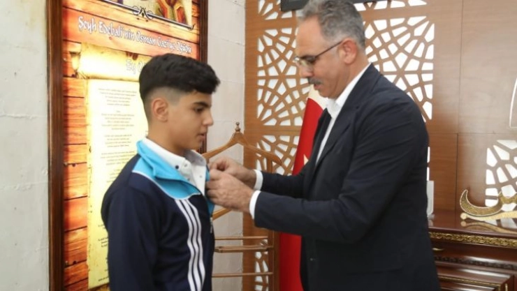 Eyyübiye Belediye Başkanı Mehmet Kuş, Dünya Gençlik Ligi'nde 5.'nci olan Savaş Öğüş'ü ödüllendirdi.