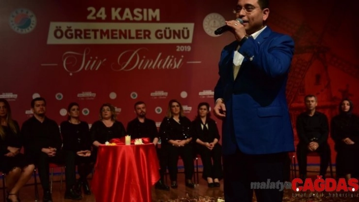 Kepez'deki okullarda görev yapan öğretmenlerin düzenlediği '24 Kasım Öğretmenler Günü Şiir Dinletisi'ne katılan Kepez Belediye Başkanı Hakan Tütüncü, Şair Erdem Bayazıt'ın 'Sana, Bana, Vatanıma, Ülkemin İnsanlarına Dair' adlı şiirini öğretmenlere ithafen okudu.