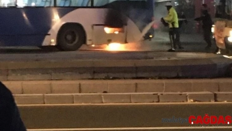 Ankara'da içinde yolcu bulunan halk otobüsü, motorunda meydana gelen arızadan dolayı alev aldı.