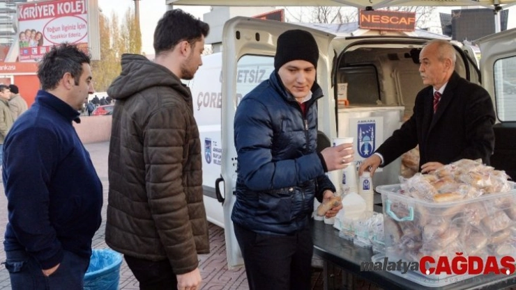 Öğrencilerden gelen yoğun talep üzerine Büyükşehir Belediyesi, sabah erken saatlerde lise ve üniversite öğrencilerinin yoğun olarak kullandığı Ostim Metro İstasyonu’nda da sıcak çorba ve ekmek dağıtımı için düğmeye bastı.