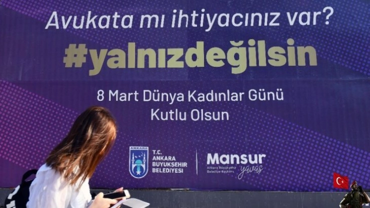 Büyükşehir Belediyesi, ayrıca kent genelinde 100 noktayı “şiddet görüyorsan, mobinge uğruyorsan, avukata ihtiyacın varsa, okula gidiyorsan, kooperatifsen, girişimciysen yalnız değilsin” hashtaginin yazılı olduğu afişlerle donattı.