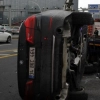 Başkentte yağmurlu zeminde kayan araç takla attı