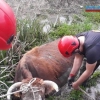 Elazığ'da bataklığa saplanan ineği, itfaiye ekipleri kurtardı.