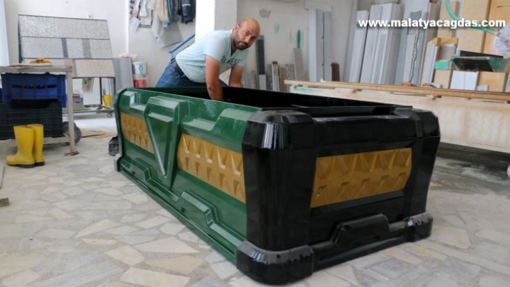"Bu preste yapılıyor. Birkaç malzemenin karışımıyla yapılıyor. 5 parçamız 12 adet vidayla kurulumu yapılıyor. Talep fena değil. Çok iyi de değil kötü de değil. Çünkü yeni bir ürün olduğu için insanların alışması zaman alıyor. Bunu ağırlıklı batıda saksı mezar olarak kullanıyorlar. Fabrika dayanıklılığına 40 yıl garanti veriyor. Kasıt olmadığı sürece 40 yıl garantili. Sivas’ta tek benim, başka yapan yok’’ diye konuştu.