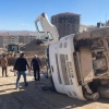 Battalgazi'nin Çamurlu Mahallesi'nde şantiye alanında meydana gelen iş kazasında kamyon devrildi
