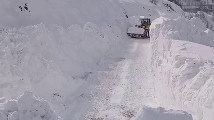 İlçe genelinde karla mücadele çalışmaları sürerken, özellikle yüksek rakımlı bölgelerde tipi nedeniyle kar kalınlığının yer yer 5 metreyi bulduğu belirtildi.