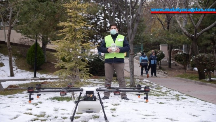 Ankara'nın Pursaklar Belediyesi, insansız hava aracı drone ile havadan dezenfeksiyon çalışması gerçekleştirdi.