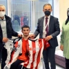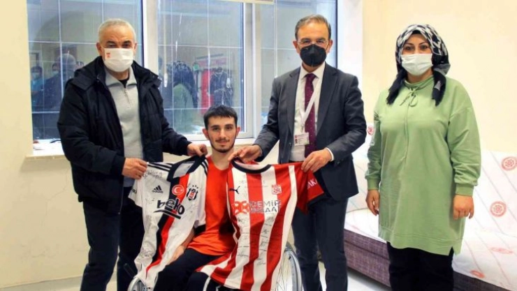 Sivas’ın İmranlı İlçesinde geçirdiği trafik kazası sonrası Sivas Cumhuriyet Üniversitesi Araştırma ve Uygulama Hastanesi Fiziksel Tıp ve Rehabilitasyon Anabilim Dalı’nda tedavi gören Yusuf Özçelik (16), koyu bir Beşiktaş taraftarı. Tedavi gördüğü odayı Beşiktaş formaları ile süsleyen Yusuf Özçelik, geçtiğimiz günlerde Sivas’ta oynanan Sivasspor - Beşiktaş müsabakası öncesi Üniversite Hastanesi Başhekimi Prof. Dr. Ömer Tamer Doğan ile iletişime geçerek Beşiktaş forması istedi. Gencin isteğini kırmayarak Sivasspor Teknik Direktörü Rıza Çalımbay ile iletişime geçen Başhekim Prof. Dr. Doğan, durumu anlatarak destek istedi. Sivasspor Teknik Direktörü Rıza Çalımbay bu isteğe kayıtsız kalmayarak hem Beşiktaş hem de Sivasspor imzalı formaları ile Yusuf Özçelik’i ziyaret etti. Çalımbay, Yusuf Özçelik’e geçmiş olsun temennisinde bulundu.