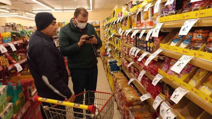 Raflarda etiket bulunup bulunmadığını inceleyen ekipler, satılan ürünlerin kasa fişlerini de kontrol edip yüzde 7’lik indirimin uygulanıp uygulanmadığını kontrol etti.