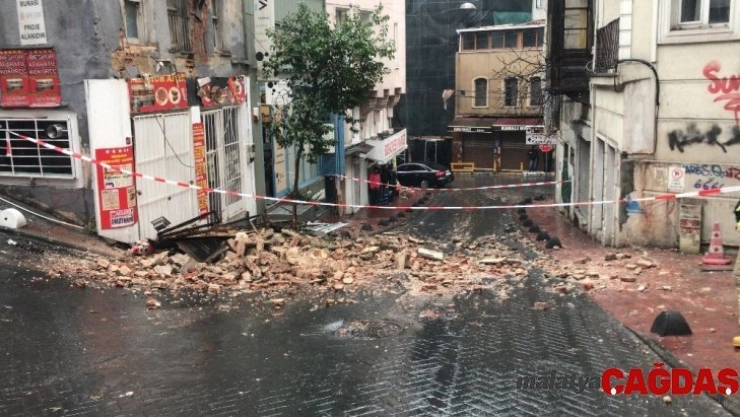 Beyoğlu Tophane Kadiriler Yokuşu'nda iki katlı boş binanın dış cephesinde çökme meydana geldi. Binada kopan parçalar yola dökülürken, olay da ölen ya da yaralanan olmadı. Yolu trafiğe kapatan ekipler çalışma başlattı.