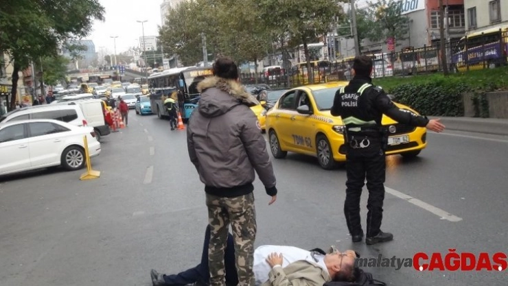 Beyoğlu'nda yolun karşısına geçmek isteyen yaşlı adama motosiklet çarptı. Çatmanın etkisiyle yaşlı adam yola savrularak yaralan adam, ambulansla hastaneye kaldırıldı.