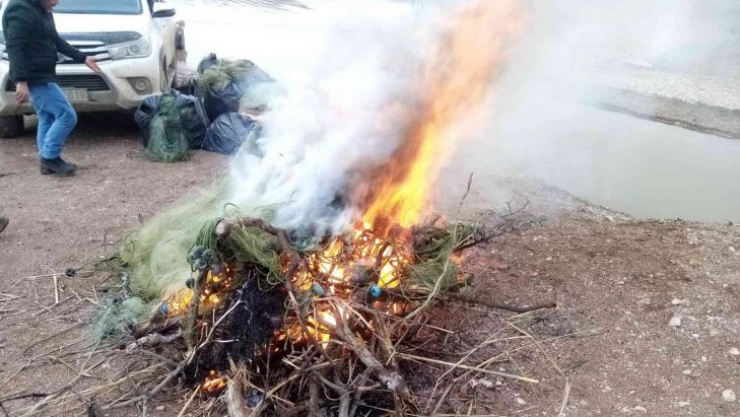 Toplanan balık ağları ekipler tarafından yakıldı. Yasa dışı avlanmak için atılan ağların kimler tarafından bırakıldığı araştırılıyor.