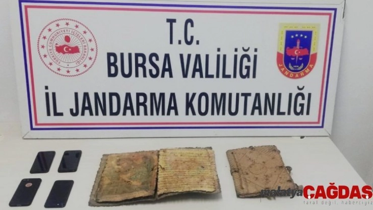 Bursa'da bin yıllık İncil'i satmaya çalışan 4 kişi, jandarmanın düzenlediği operasyonla yakalandı.