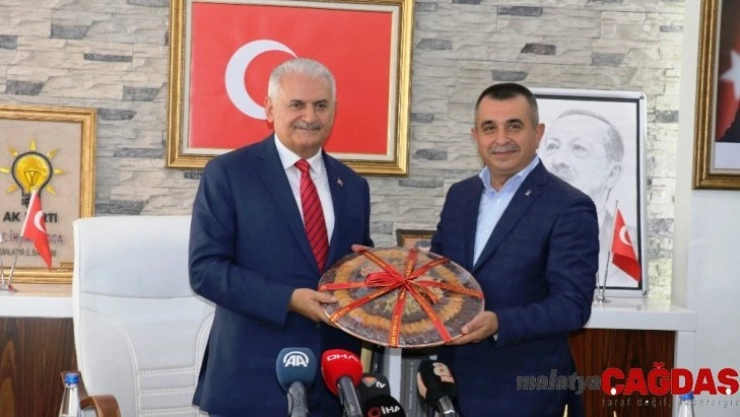 Yıldırım’a AK Parti İl Başkanlığı ziyaretinde Malatya kayısısı hediye edildi.