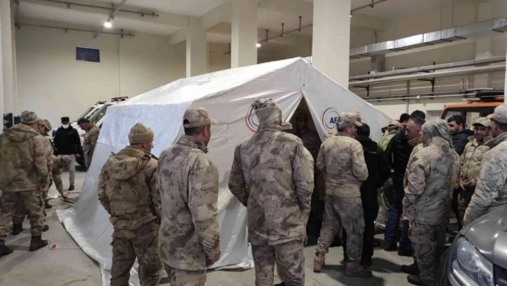 AFAD Bingöl İl Müdürlüğü ekipleri, kentteki güvenlik korucularına çadır kurma eğitimi veriyor.