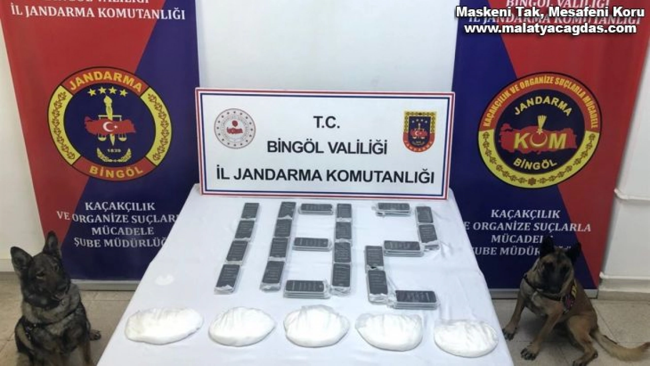 Bingöl'de jandarmanın yaptığı çalışmada piyasa değeri 2 milyon 200 bin TL olan 5'er kilogram metamfetamin ile esrar ele geçirildi.
