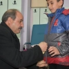 Bingöl’de bir okulda öğrencilere bot ve mont hediye edildi.