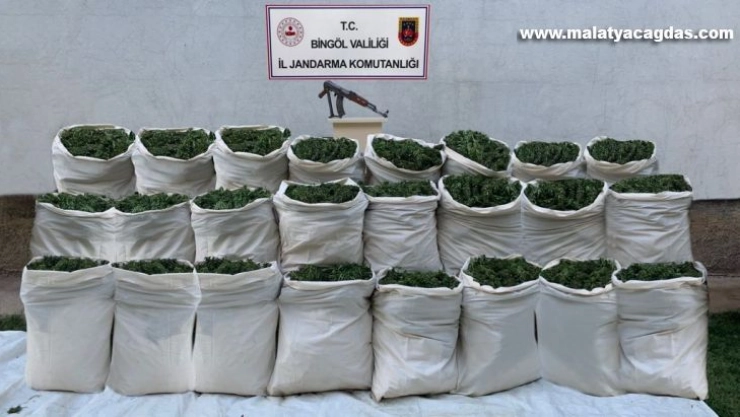 Bingöl'de İl Jandarma Komutanlığı tarafından icra edilen operasyonda 7 farklı noktada toplam 665 kilo esrar, 10 bin kök kenevir ve çeşitli silahlar ele geçirdi.