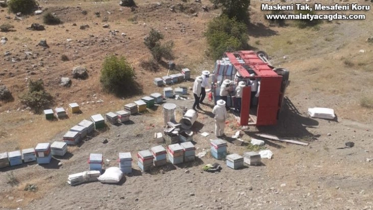 Kazada, yola saçılan arı kovanları nedeniyle arılar çevreye yayıldı. Durumun bildirilmesi üzerine Bingöl Arıcılar Birliği ekipleri, bölgeye giderek arıları topladı.