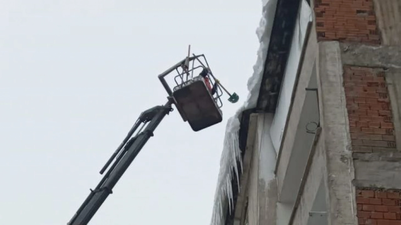 Bingöl'de çatılarda oluşan ve tehlike arz eden buz sarkıtları belediye ekiplerince temizleniyor.