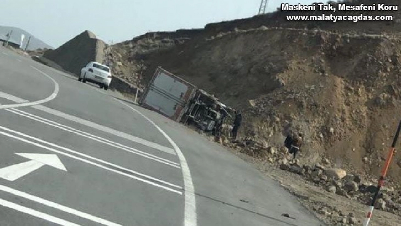 Bingöl'de kamyon devrildi, sürücü hafif yaralandı.