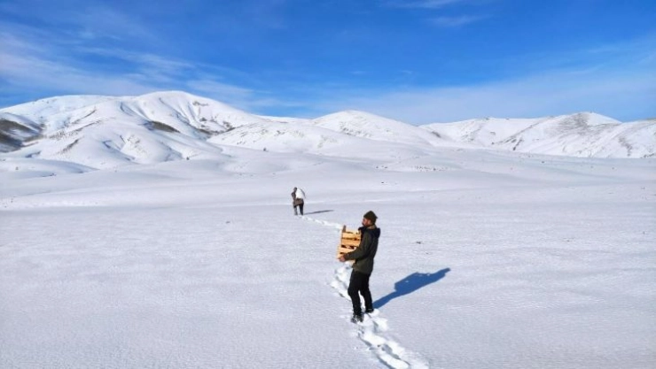 Bingöl'de kış mevsimi nedeniyle yüksek rakımlı bölgelere yaban hayvanları için yem bırakıldı.