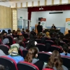 Öğrencilerin tüm sorularına içtenlikle cevap veren Çınar, kitap dağıtımından sonra öğrencilerle özçekim yaptı.