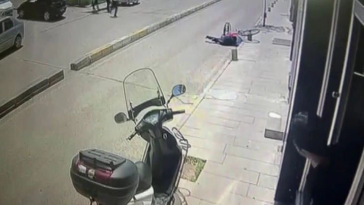 Bisiklet kazası güvenlik kameralarına yansıdı