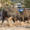 Muğla’nın Milas ilçesinde faaliyet gösteren Türkiye Muharip Gaziler Derneği Milas Şubesi yararına boğa güreşleri düzenlendi. Renkli görüntülere sahne olan güreşler sırasında bazı boğalar tel örgüleri aşarak güreş alanının dışına çıktı.