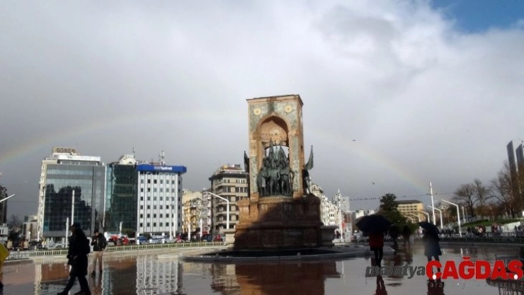 İstanbul'da etkili olan yağmur sonrası İstanbul Boğazı 'nı çevreleyen ve Taksim'de kameralara yansıyan gökkuşağı oluşturduğu manzarayla görenleri hayran bıraktı.