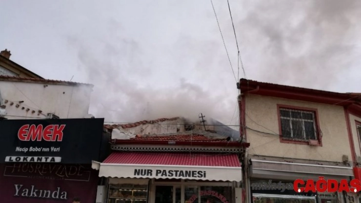 Afyonkarahisar'ın Bolvadin ilçesinde 35 iş yerinin bulunduğu binanın çatısında çıkan yangın esnafı korkuttu.