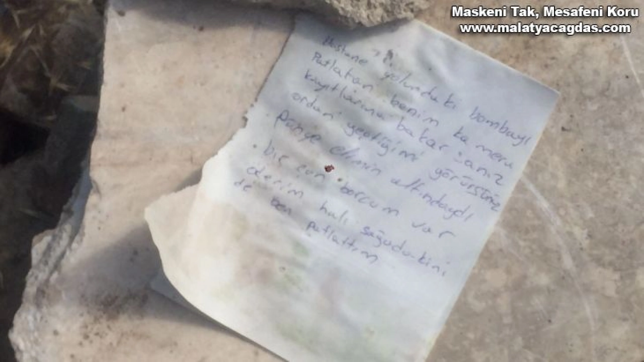 Şahsın yol kenarına bıraktığı değerlendirilen, "Hastane yolundaki bombayı patlatan benim" notu üzerine geniş çaplı soruşturma başlatıldı.