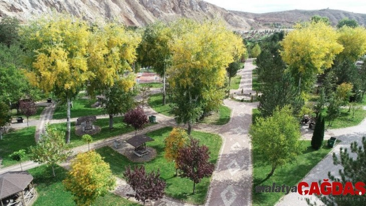 Sivas'ta Paşabahçe Mesire alanında Sonbaharın gelmesiyle birlikte ağaçların sarı renge bürünmesi güzel görüntüler oluşturdu.