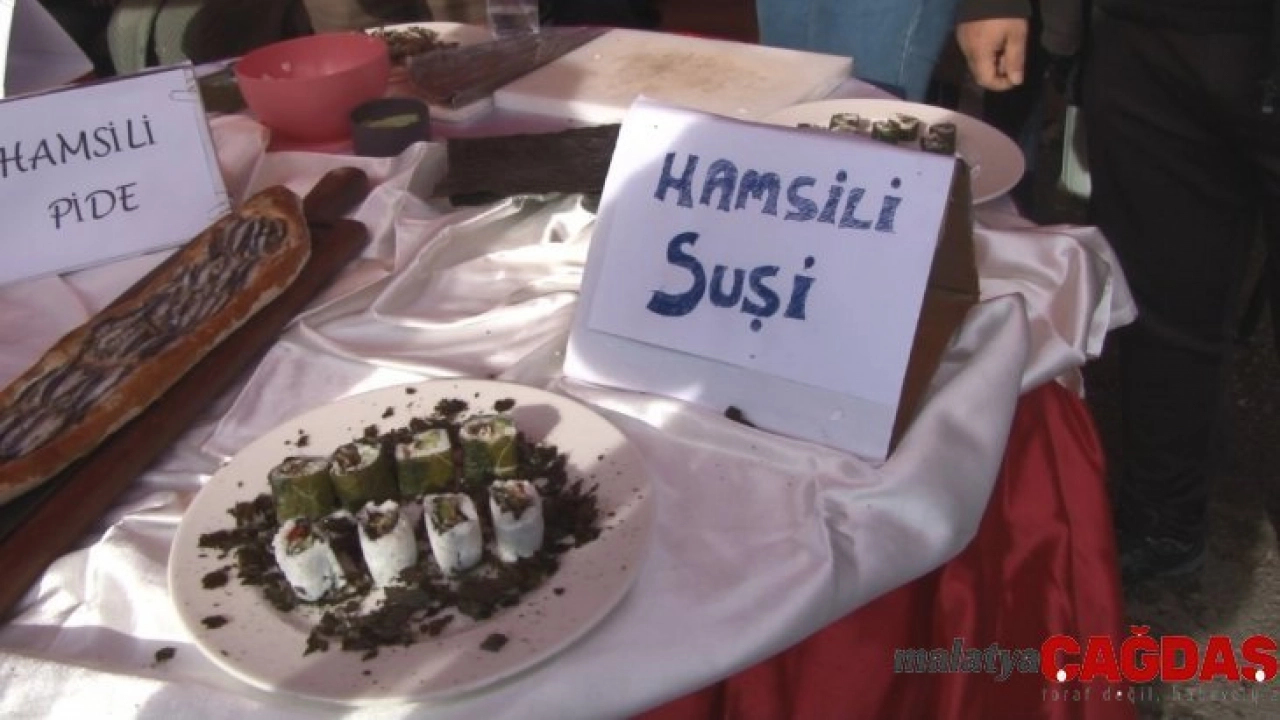 2,5 ton hamsinin tüketildiği festivalde en çok ilgiyi Hamsili Suşi gördü. Ekrem Orhon Teknik ve Anadolu Meslek Lisesi tarafından açılan stantta hamsi kullanılarak yapılan yemekler sergilendi. En çok dikkat çeken ise çiğ balıktan yapılan bir Japon yemeği olan Suşi oldu. Çiğ balık ve yosun yerine pişmiş hamsi ve kara lahanadan ’Hamsili Suşi’ yapan Ekrem Orhon Teknik ve Anadolu Meslek Lisesi 12. sınıf öğrencisi Dilara Türüt, “Daha önce okulda öğretmenlerimizle denemiştik. Bugün Rizeliler’e tanıtmak için lahana yaprağına sarılmış suşi yapacağız. İnşallah beğenirler. Pişmiş hamsiden yapacağız, sağlık açısından çiğ hamsiden yapmıyoruz. Tamamen suşi gibi aynı tatta olamasa da iyi bir deneme ile başaracağımıza inanıyorum” dedi.