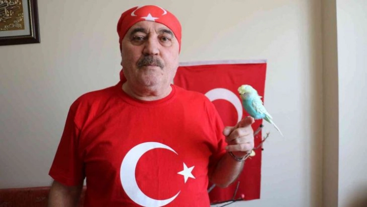 Sivas’ta Japon isimli muhabbet kuşu, "Muhsinler ölmez vatan bölünmez" ve "Muhsin başkan ruhun şad olsun" diyor.