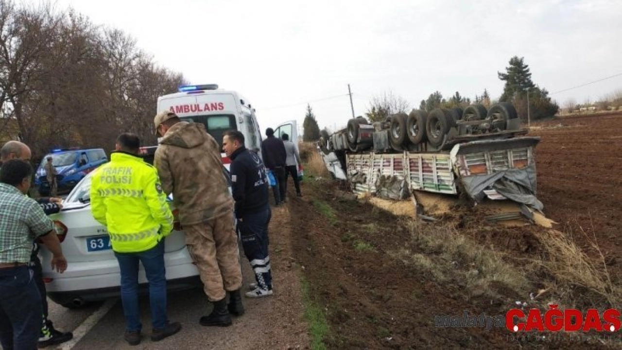 Şanlıurfa'da buğday yüklü tırın devrilmesi sonucu meydana gelen trafik kazasında 2 kişi yaralandı.